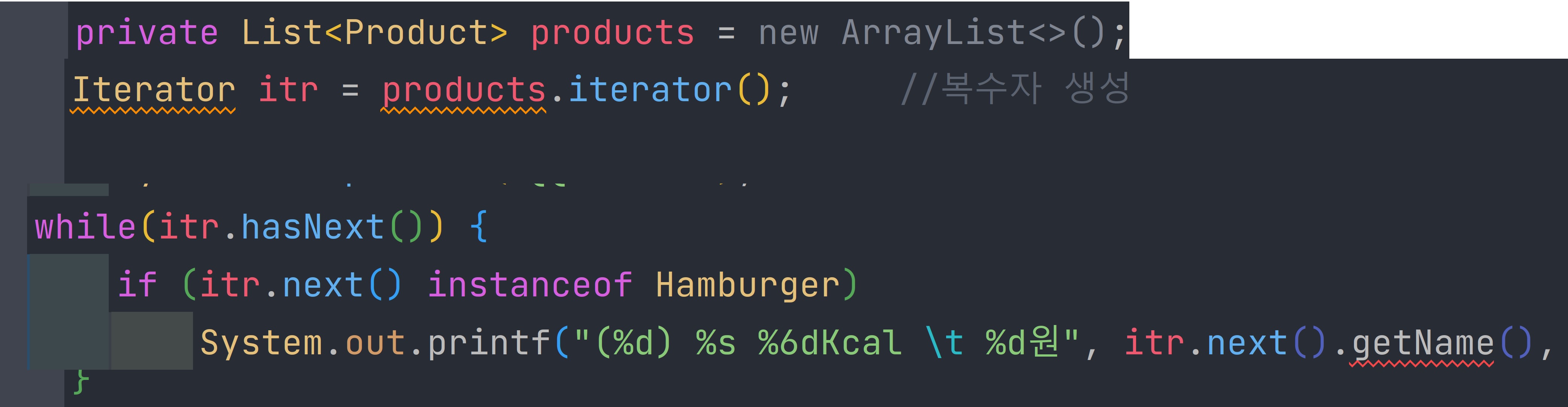 if의 조건문 안에 itr.next() 가 있고